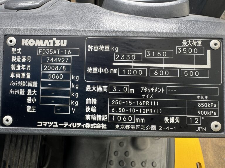 人気のコマツ製3.5tディーゼルフォークリフトが入荷しました。