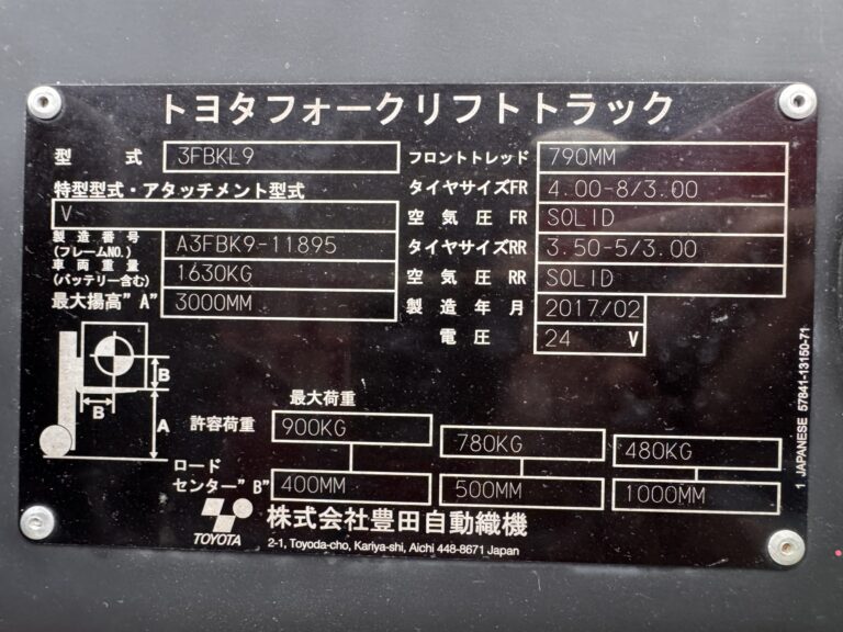 コンパクト・倉庫作業に最適!トヨタ 0.9t 電動フォークリフト 2017年式